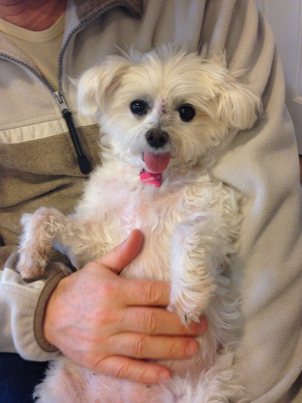 Here is one of her last photos, happy in daddy’s arms, even with her biopsy stitches…Such a brave little pooch. Thank you for that allowing me to adopt this precious member of our family.